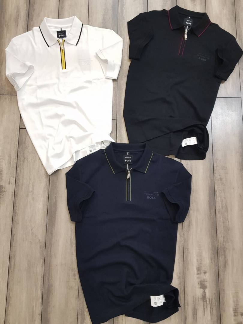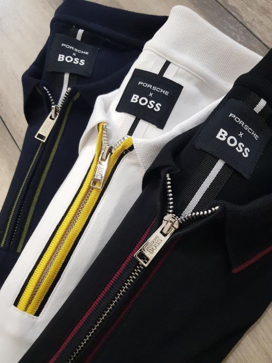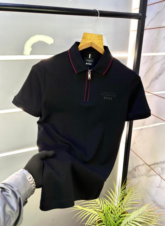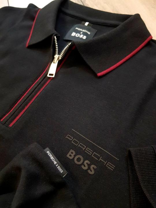 Boss x Porsche Edition Black Zipper Collar Neck Premium Polo T-shirt F2914-BL