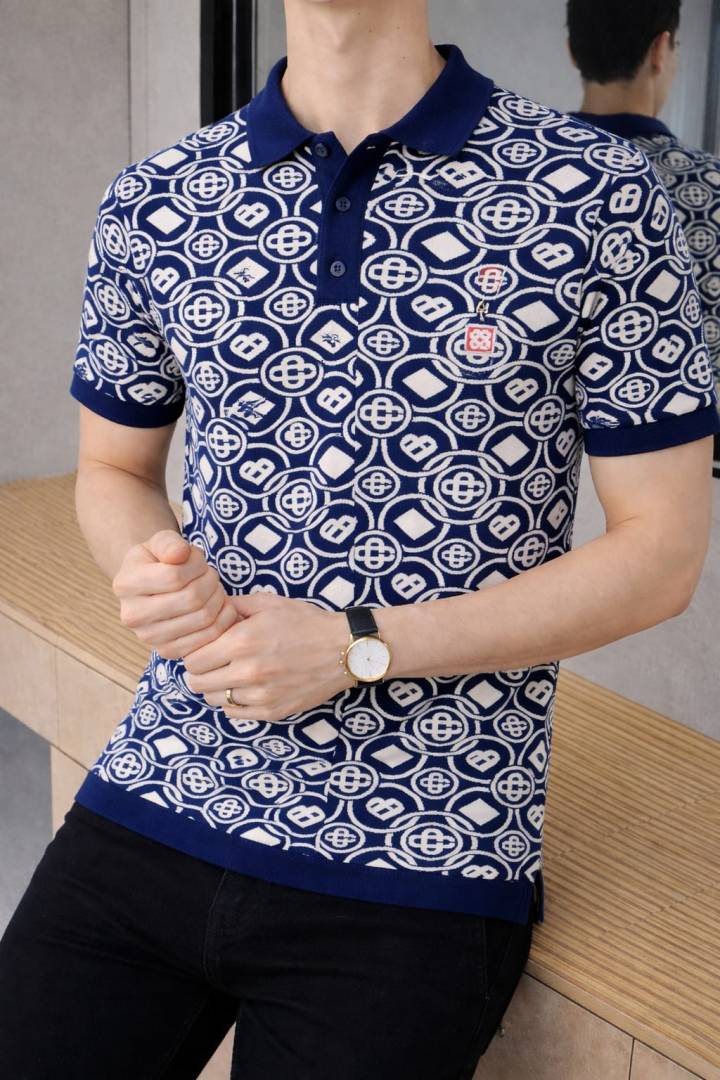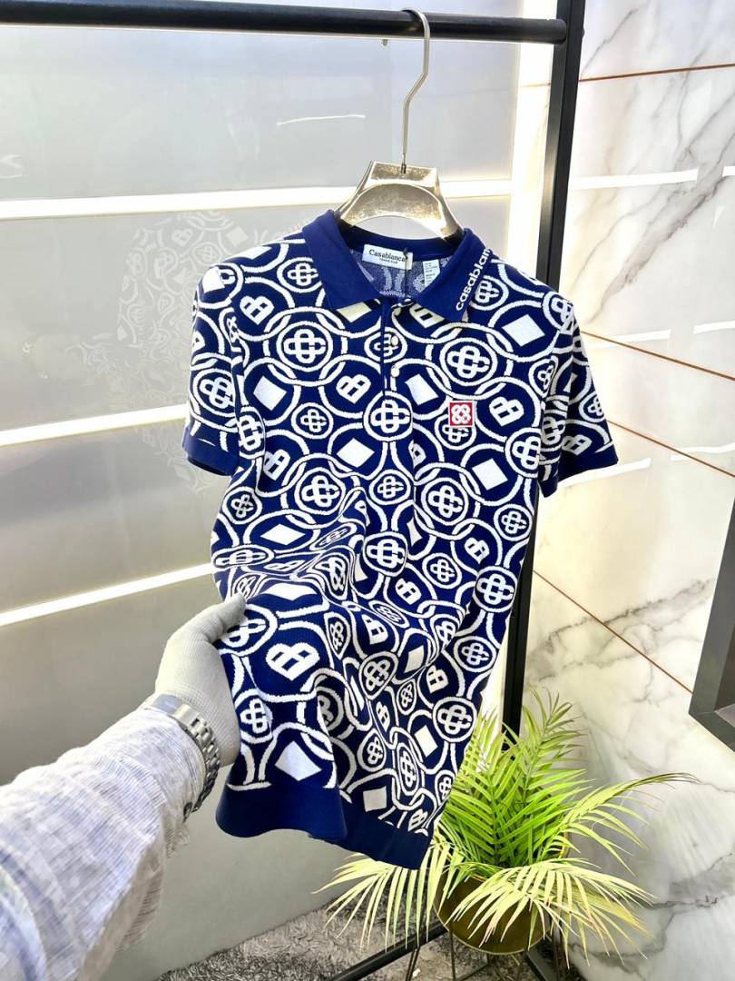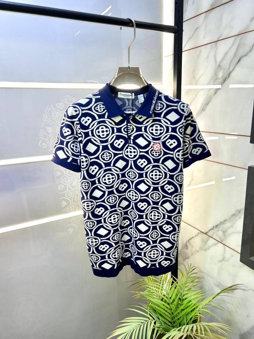 Casablanca Imported knitted Monogram Super Premium Navy Collar Neck Polo T-shirt F3610-NY