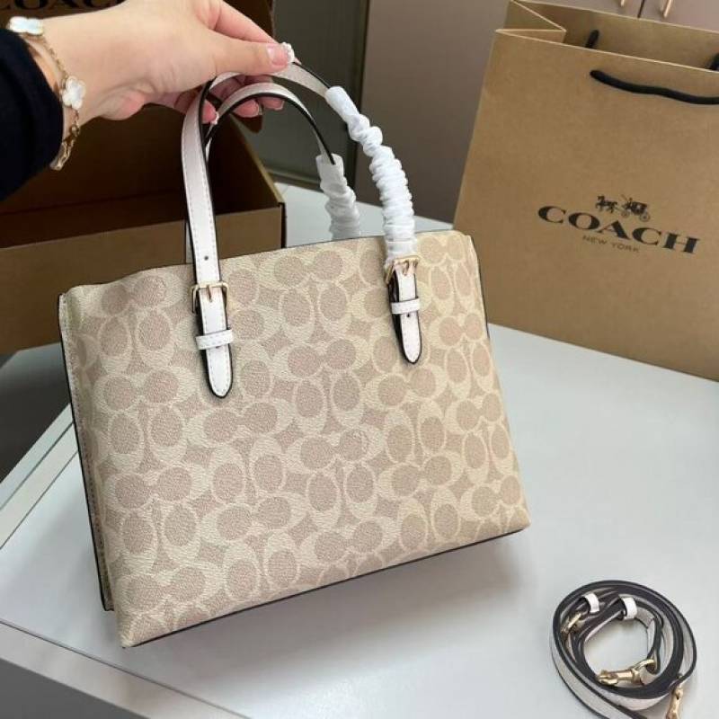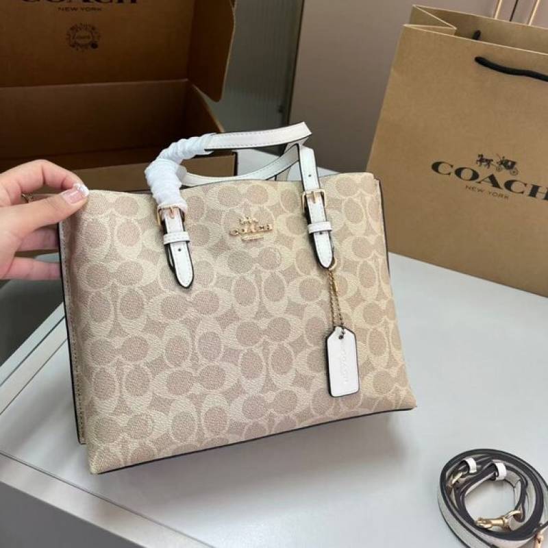 Coach_Mollie_Tote_25_Signature_Canvas_White_Leather_With_OG_Box_Dust_Cover_&_Carry_Bag_Vanilla_White
