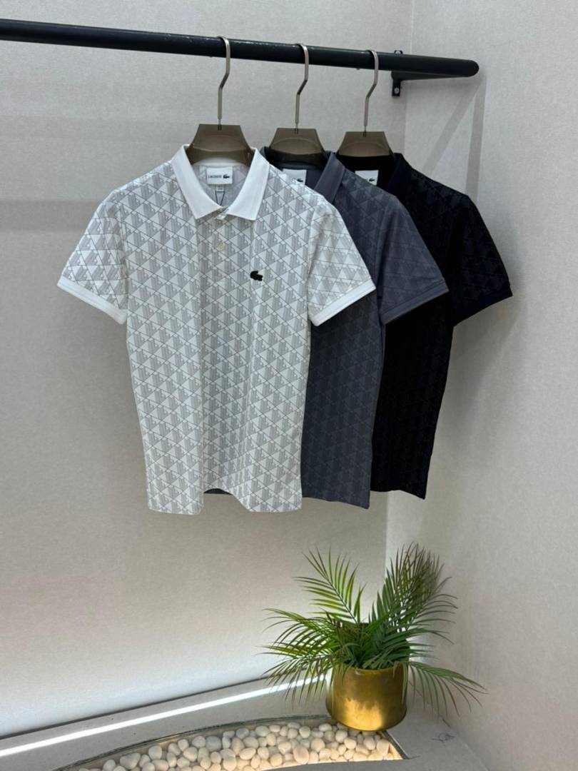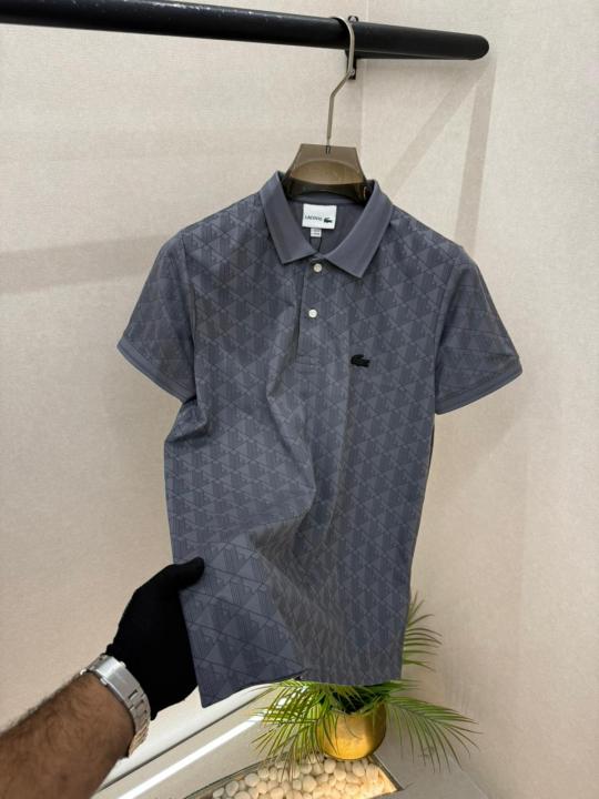 Lacost e Grey Monogram Premium Collar Neck Polo T-shirt With Brand Box Packing F3639-GY