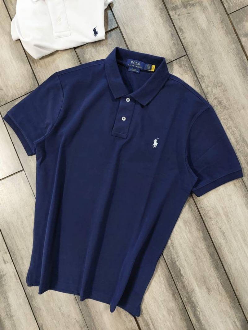 Ralp h Lauren Navy Polo Premium Collar Neck T-shirt F3561-NY