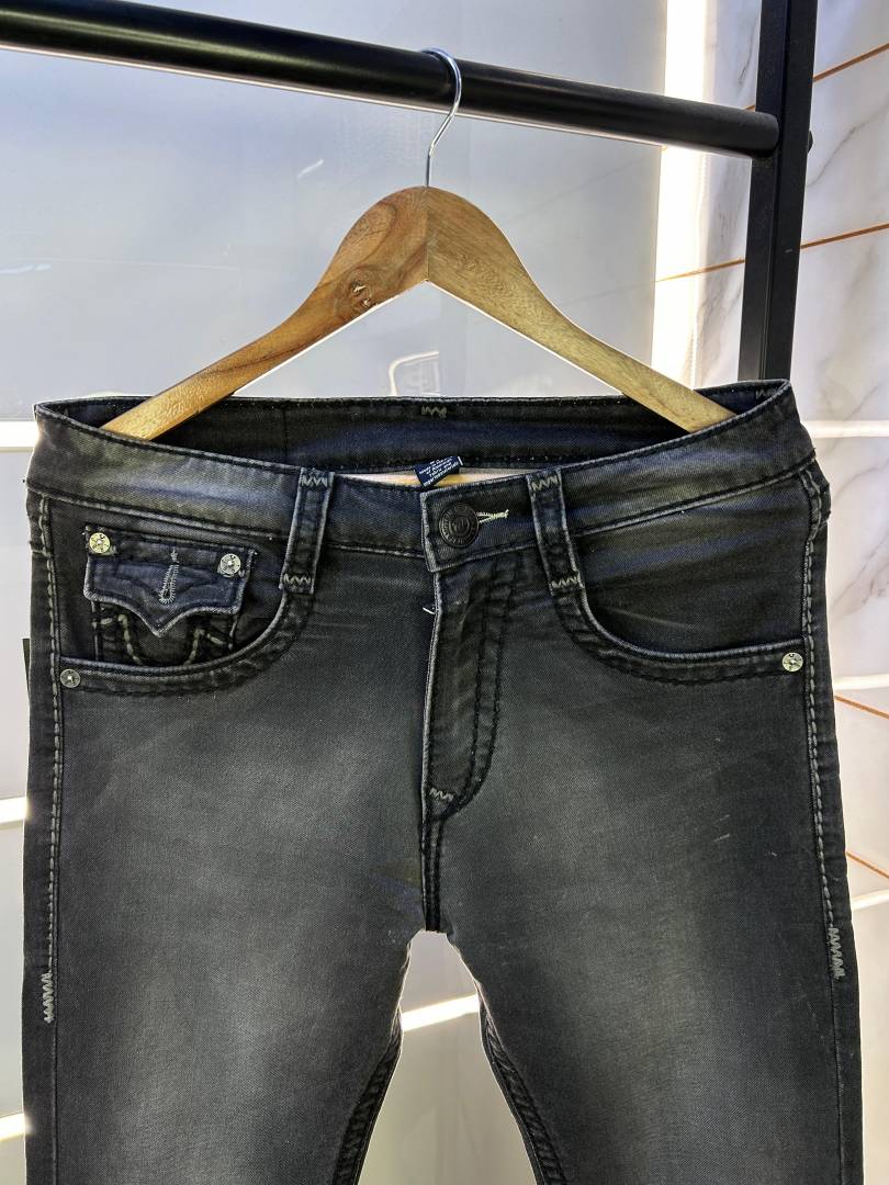 True Religion Black Straight Fit Premium Imported Fabric Denim with Back Flap pockets and Embroidered work 3774